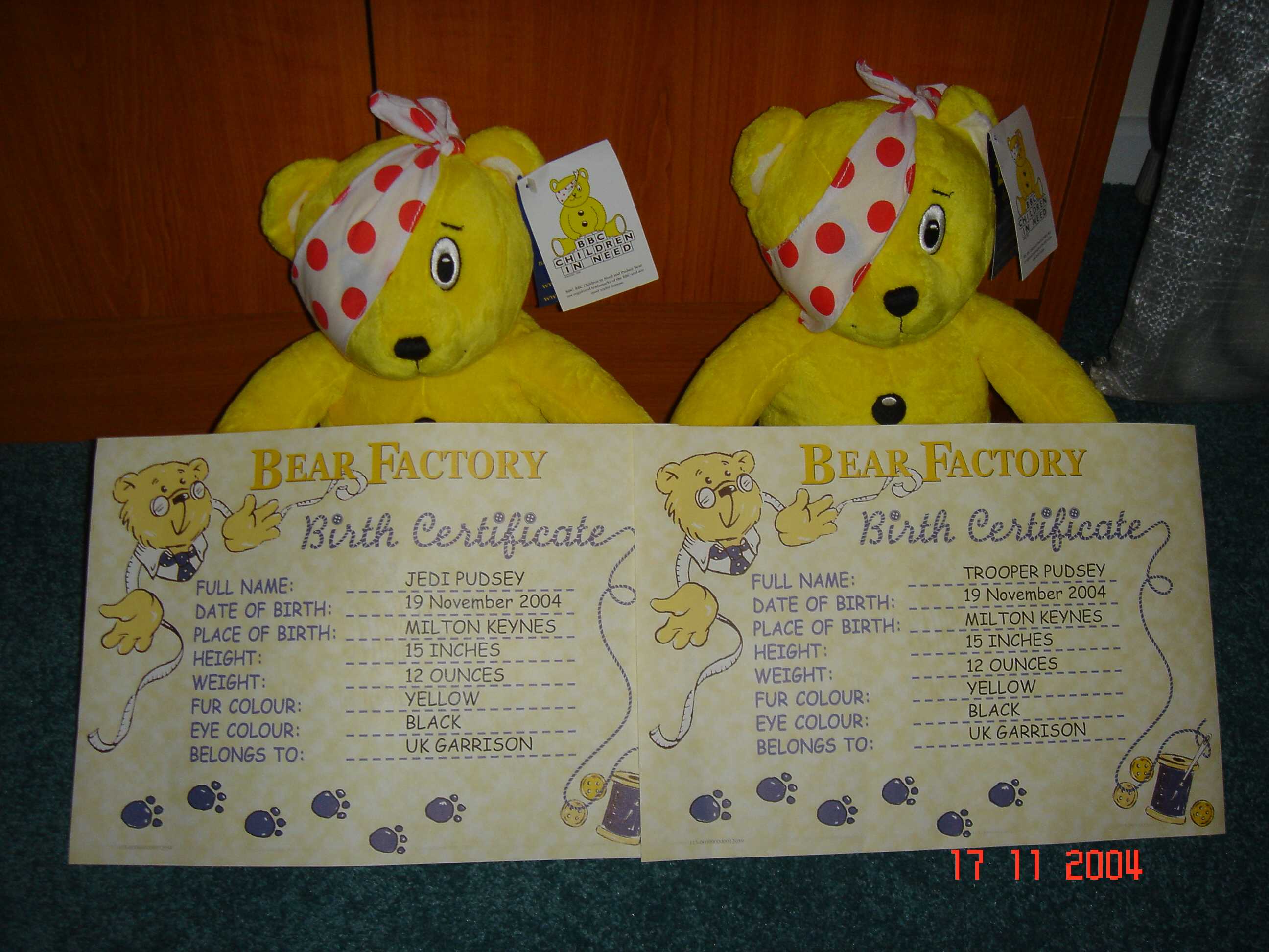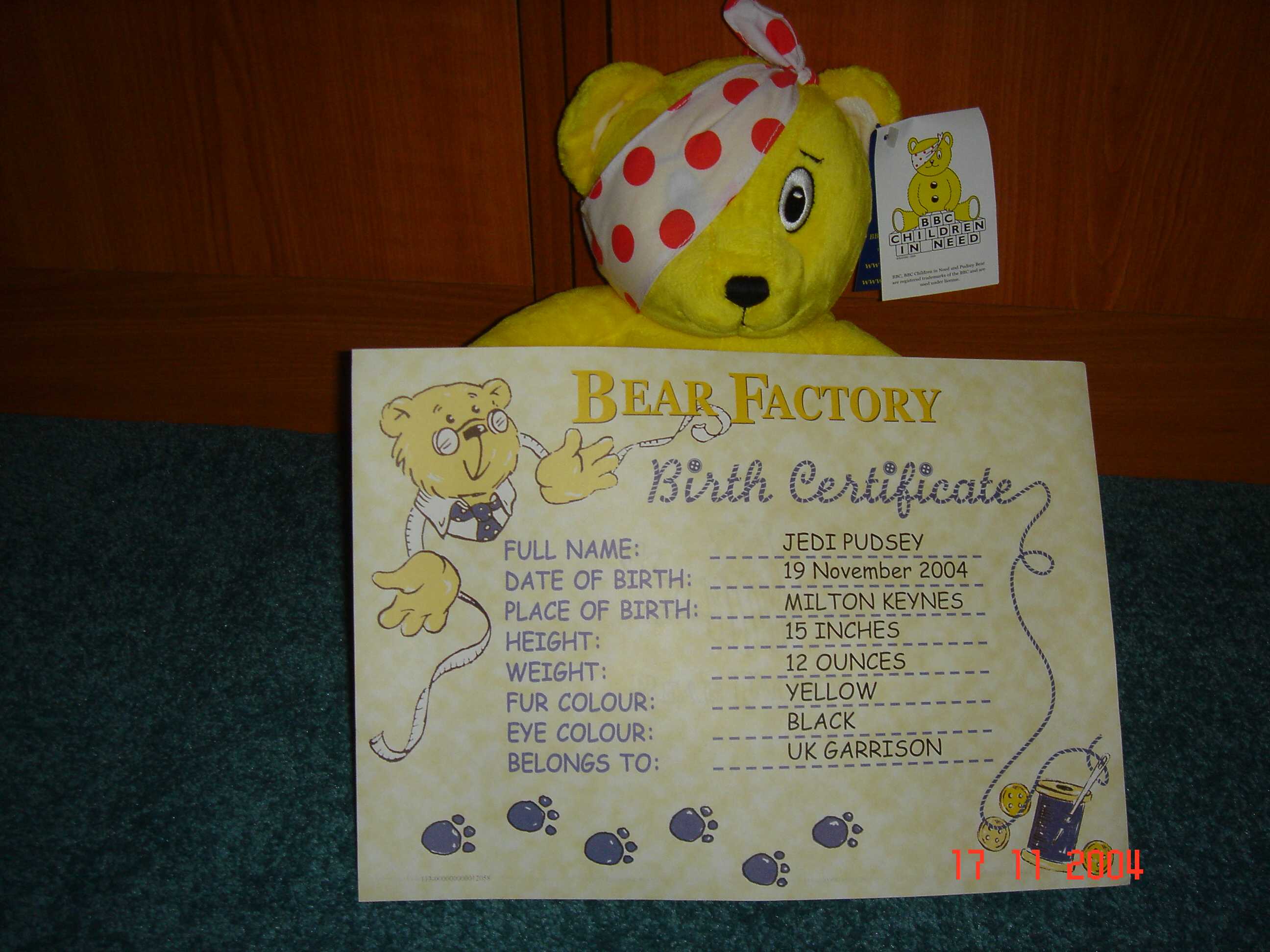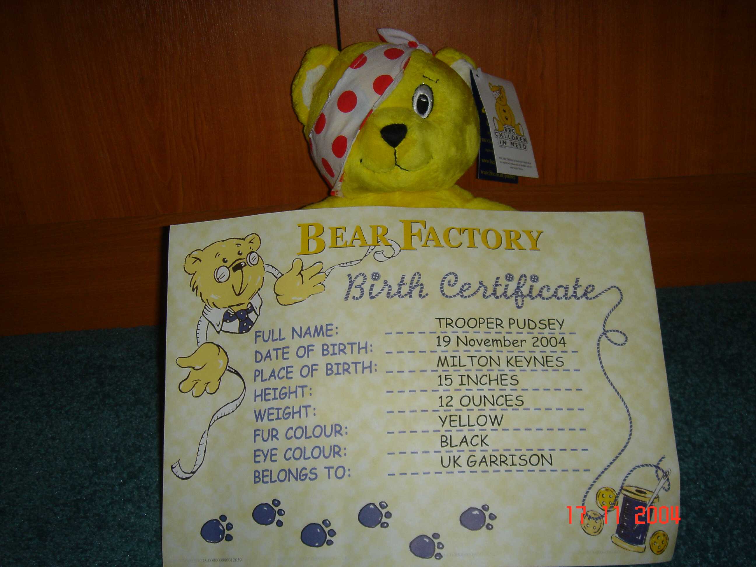a Pudsey Bear for use on the UK Garrison Photo stand. Click on a